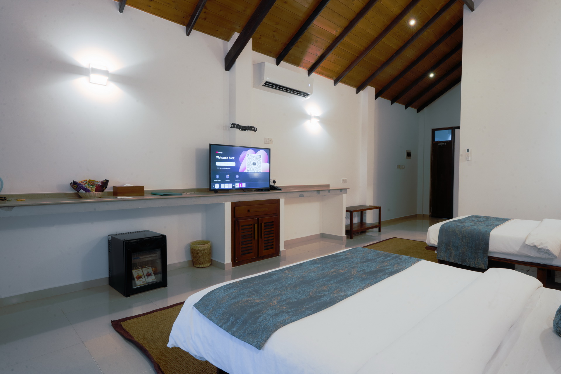 Much like our Garden Bliss accommodations, this spacious room offers an elevated view of Uppuveli Beach, blending elegance with a commanding perspective. Indulge in the peaceful beauty of your surroundings from a vantage point that provides comfort and an inspiring escape.